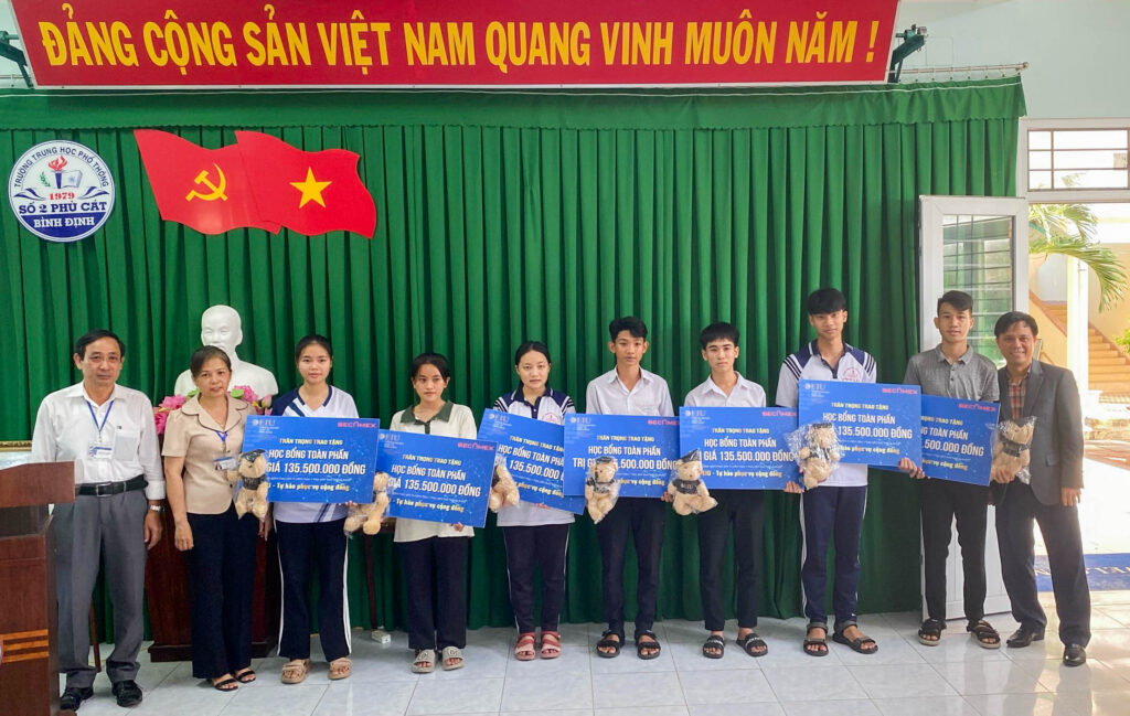 Trao 14 suất học bổng toàn phần cho học sinh Trường THPT số 2 Phù Cát