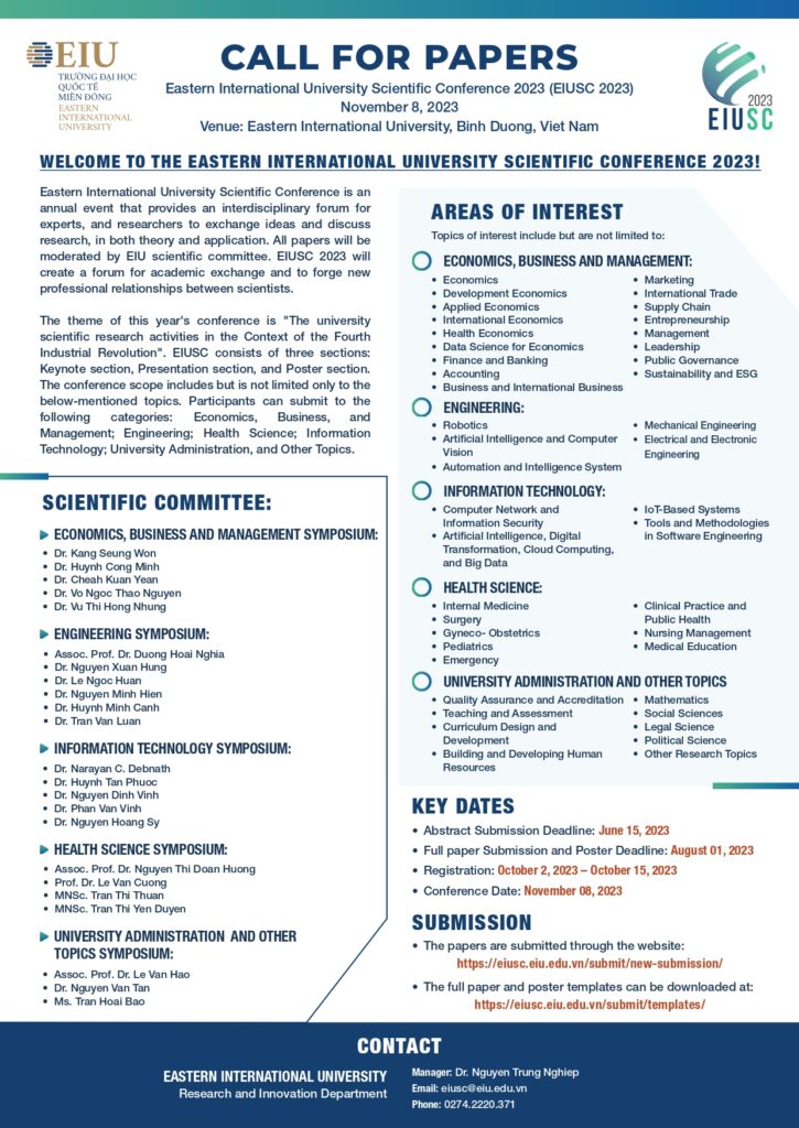 Thông báo Hội nghị Khoa học Trường Đại học Quốc tế Miền Đông năm 2023