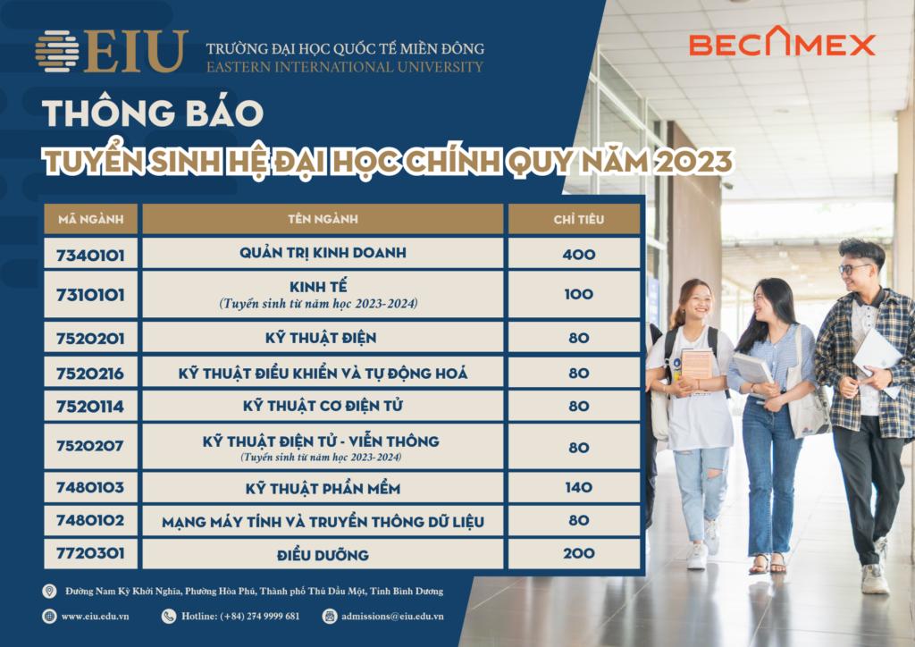 EIU tuyển sinh 1240 chỉ tiêu trong năm 2023