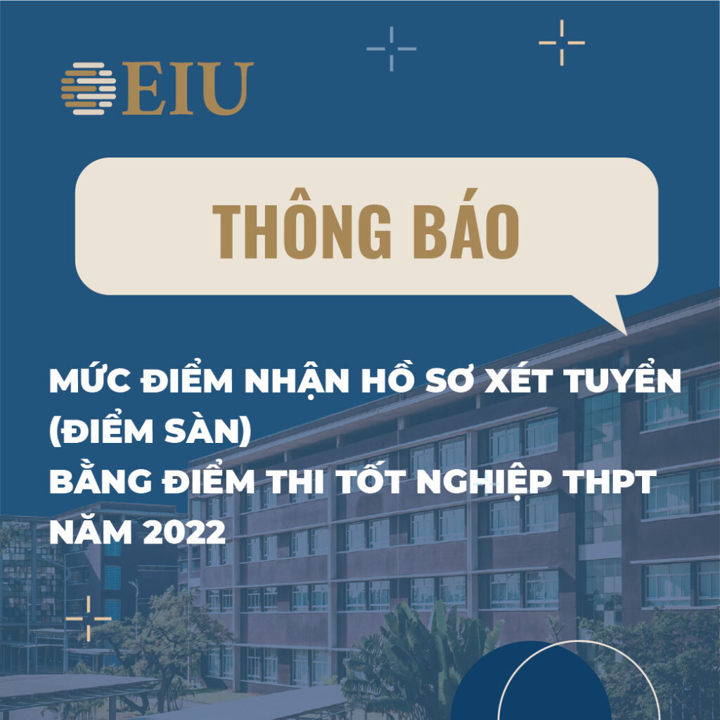 EIU thông báo mức điểm nhận hồ sơ xét tuyển (điểm sàn) bằng điểm thi tốt nghiệp THPT năm 2022