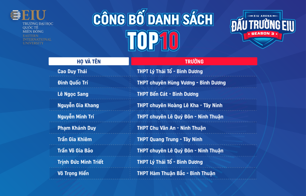 After Over a Month of Competition, the Grand Finale of EIU Arena Season 3 Officially Takes Place This Morning (December 8). In the end, Cao Duy Thai, a 12A1 student from Ly Thai To High School (Binh Duong), excelled in surpassing 14 other finalists to win the championship, earning a cash prize of up to […]