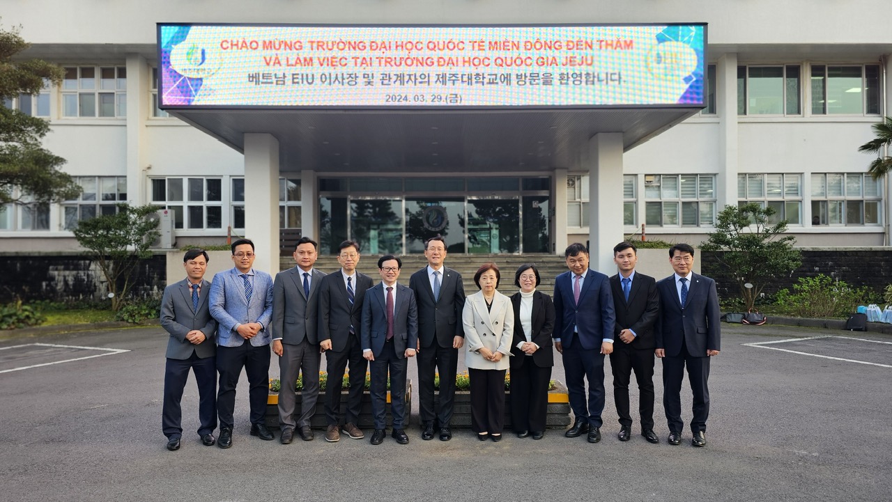 On March 29, 2024, the delegation from Eastern International University (EIU), led by Mr. Nguyen Tan Loi, Chairman of the University Council, visited and worked at Jeju National University, South Korea, to implement EIU’s strategy for developing international cooperation networks and to discuss opportunities for educational development cooperation. The EIU delegation was welcomed by Professor Kim Eel-Hwan, President of Jeju National University, Professor Kang Hee-Kyung, Vice President, and leaders of various departments.