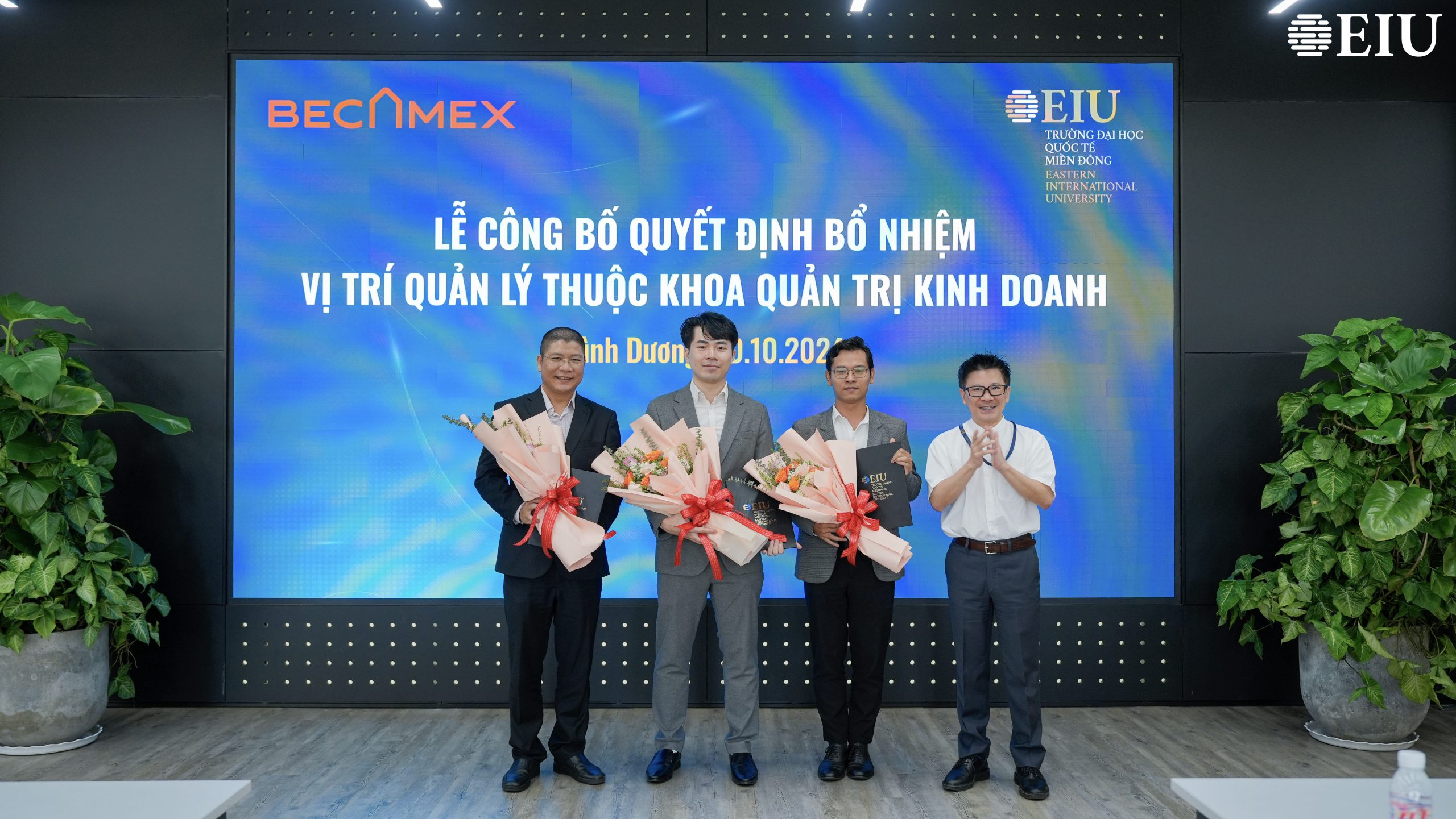Speaking at the ceremony, Dr. Ngo Minh Duc congratulated and assigned tasks to the newly appointed management team, emphasizing the significant role and efforts of BBS in EIU’s development. He also addressed the challenges ahead, particularly as the university pursues international accreditations such as AACSB and works to enhance its academic programs by integrating experiential learning methods to equip students with practical skills for their future careers.
