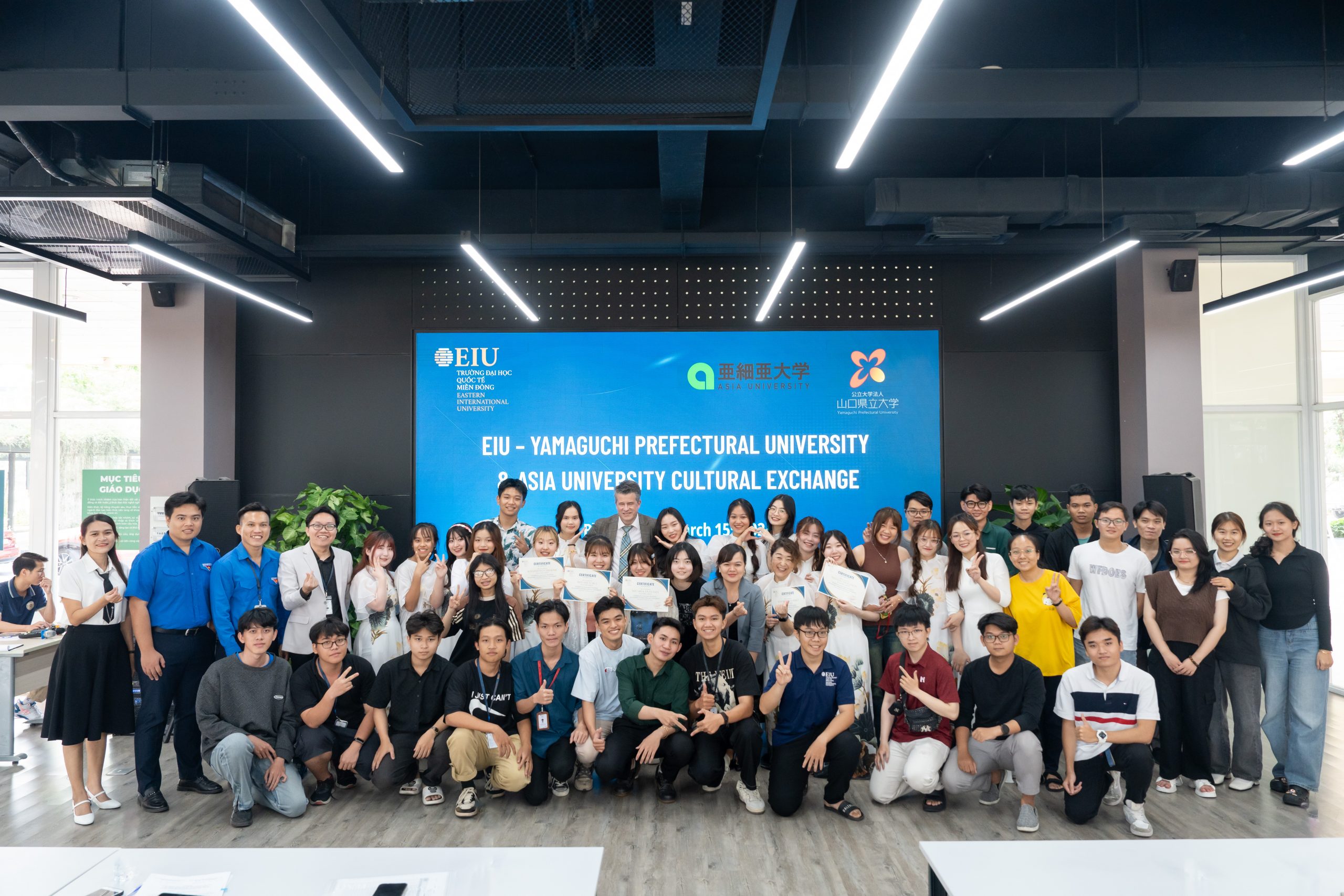 On March 15, 2024, an emotionally rich and meaningful connection activity took place between the students of the Eastern International University (EIU) and those from Yamaguchi Prefectural University (YPU) and Asia University, Japan, under the theme “EIU – Yamaguchi Prefectural University & Asia University Cultural Exchange”.