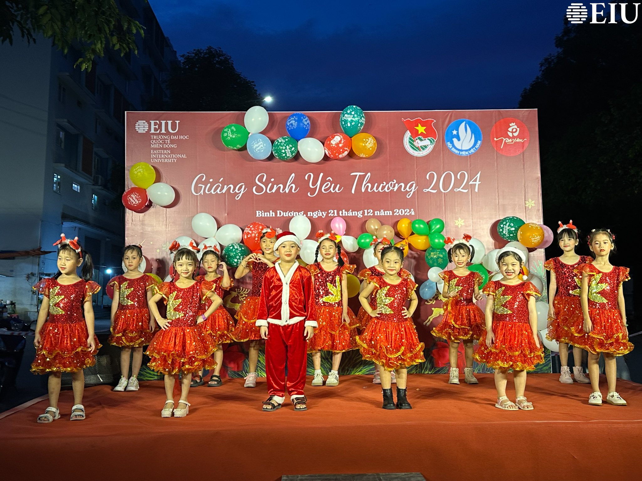 On the evening of December 21, the EIU Youth Union, the EIU Student Association, and the Passion EIU Club collaborated with the Management Board of Becamex Dinh Hoa Social Housing, Dinh Hoa Ward Youth Union, and various sponsors to successfully organize the ‘Loving Christmas 2024’ program.
