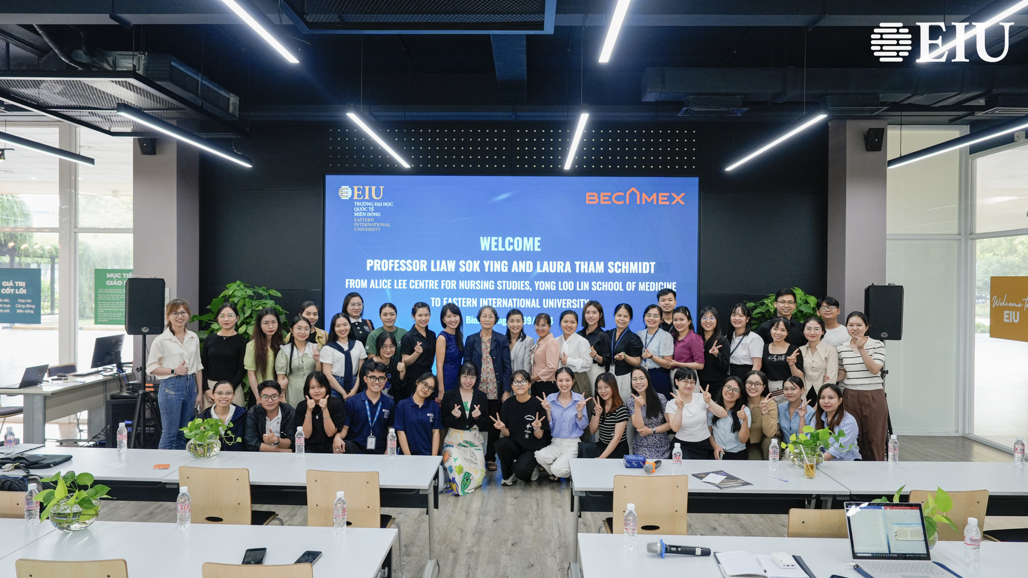 From September 18th to 19th, Professors Liaw Sok Ying and Laura Tham Schmidt from the Alice Lee Center for Nursing Studies, National University of Singapore (NUS), held a working session and exchanged experiences with lecturers, students from the School of Nursing, and members of the Medical Project Committee at Eastern International University (EIU).