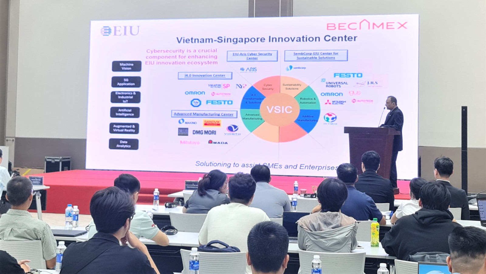 Dr. Narayan Chandra Debnath, Dean of the School of Computing and Information Technology at EIU, introduced the Cybersecurity Center and the situation of cybersecurity in Vietnam.