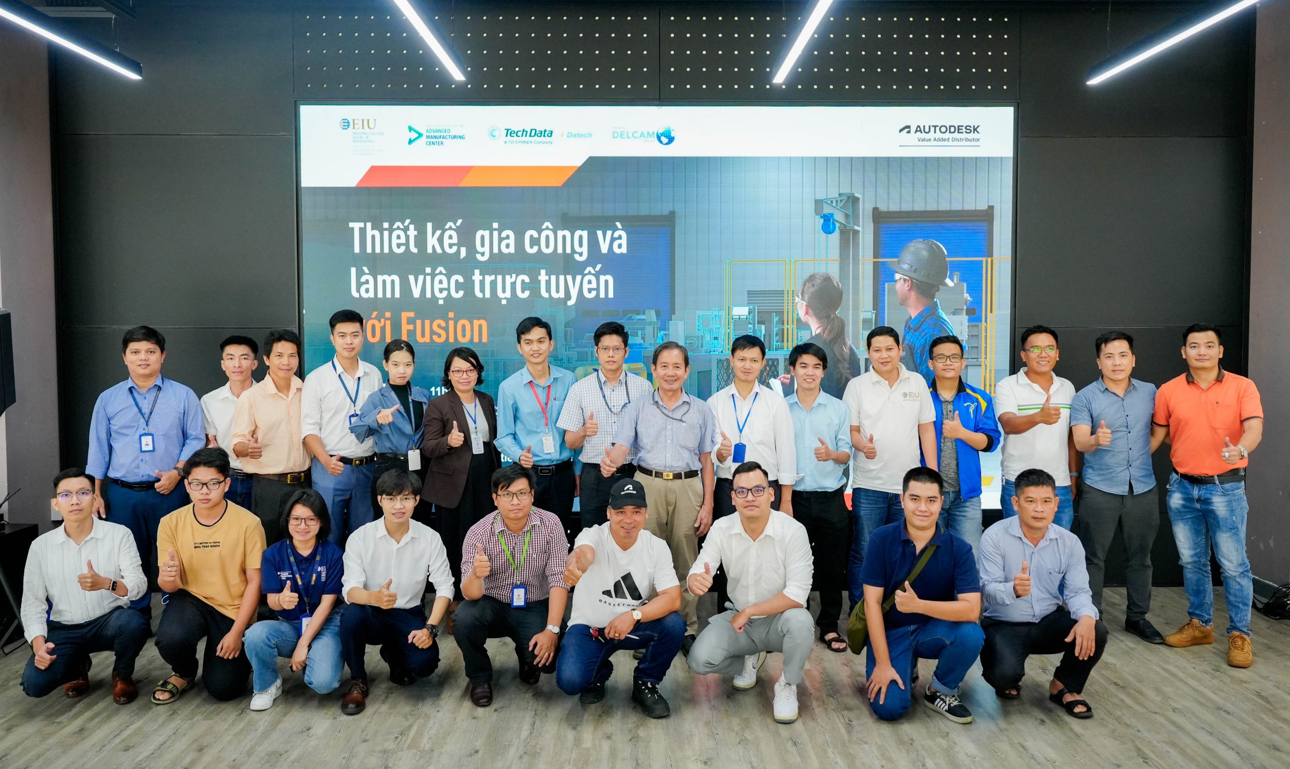 On June 5,2024, the Advanced Manufacturing Center (AMC) of Eastern International University (EIU), in collaboration with Hankook Delcam Vietnam Co., Ltd. and Tech Data Advanced Solutions (Vietnam) Co., Ltd., successfully organized the seminar “Design, Machining, and Online Collaboration with Fusion.”