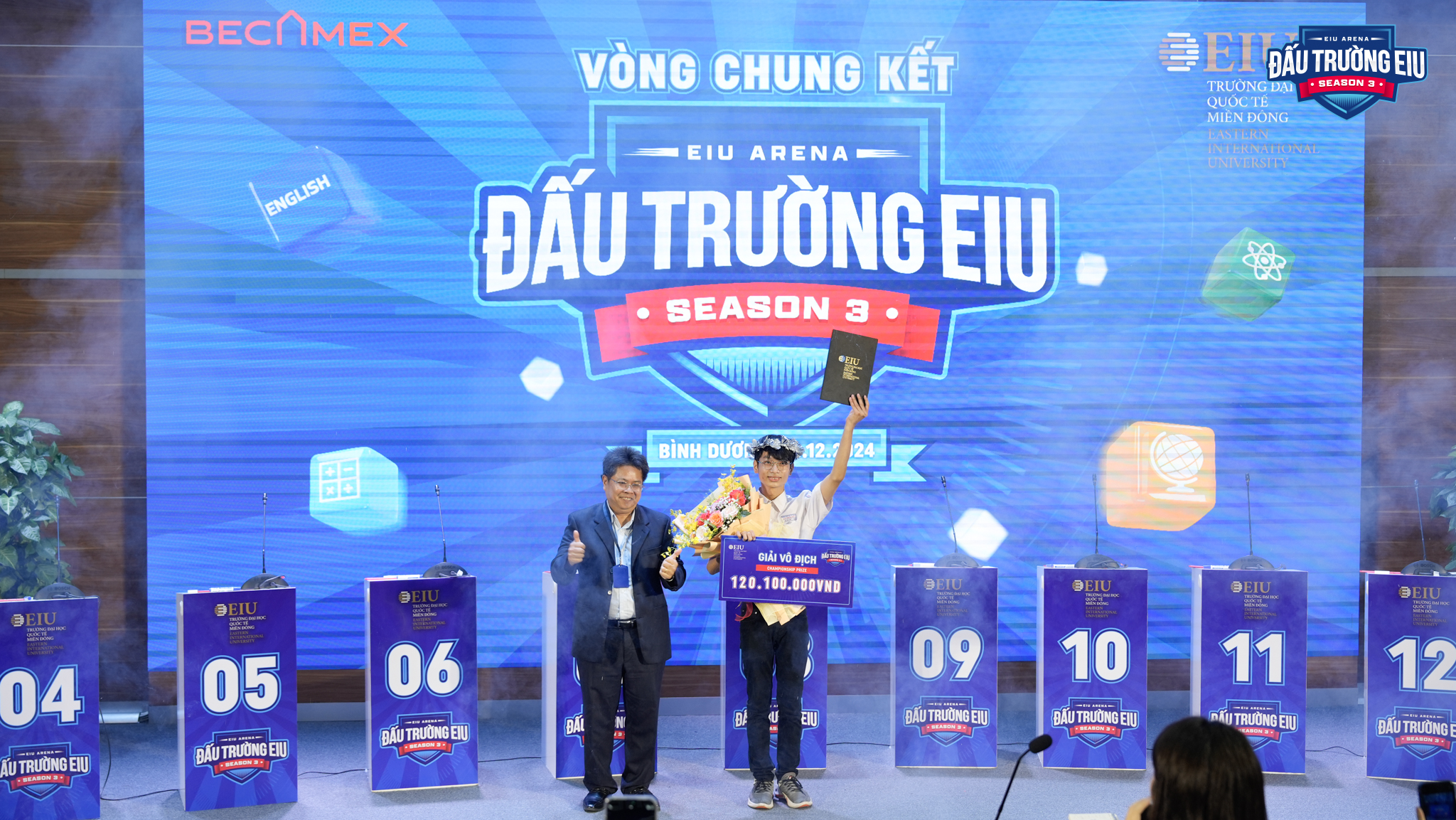 Sau hơn 1 tháng tổ chức, sáng nay (08/12) vòng Chung kết Cuộc thi Đấu trường EIU season 3 chính thức diễn ra. Chung cuộc, em Cao Duy Thái – Học sinh lớp 12A1 Trường THPT Lý Thái Tổ (Bình Dương) đã xuất sắc vượt qua 14 thí sinh còn lại để giành Quán quân Cuộc thi với giá trị giải thưởng tiền mặt lên đến 120.100.000 VNĐ.